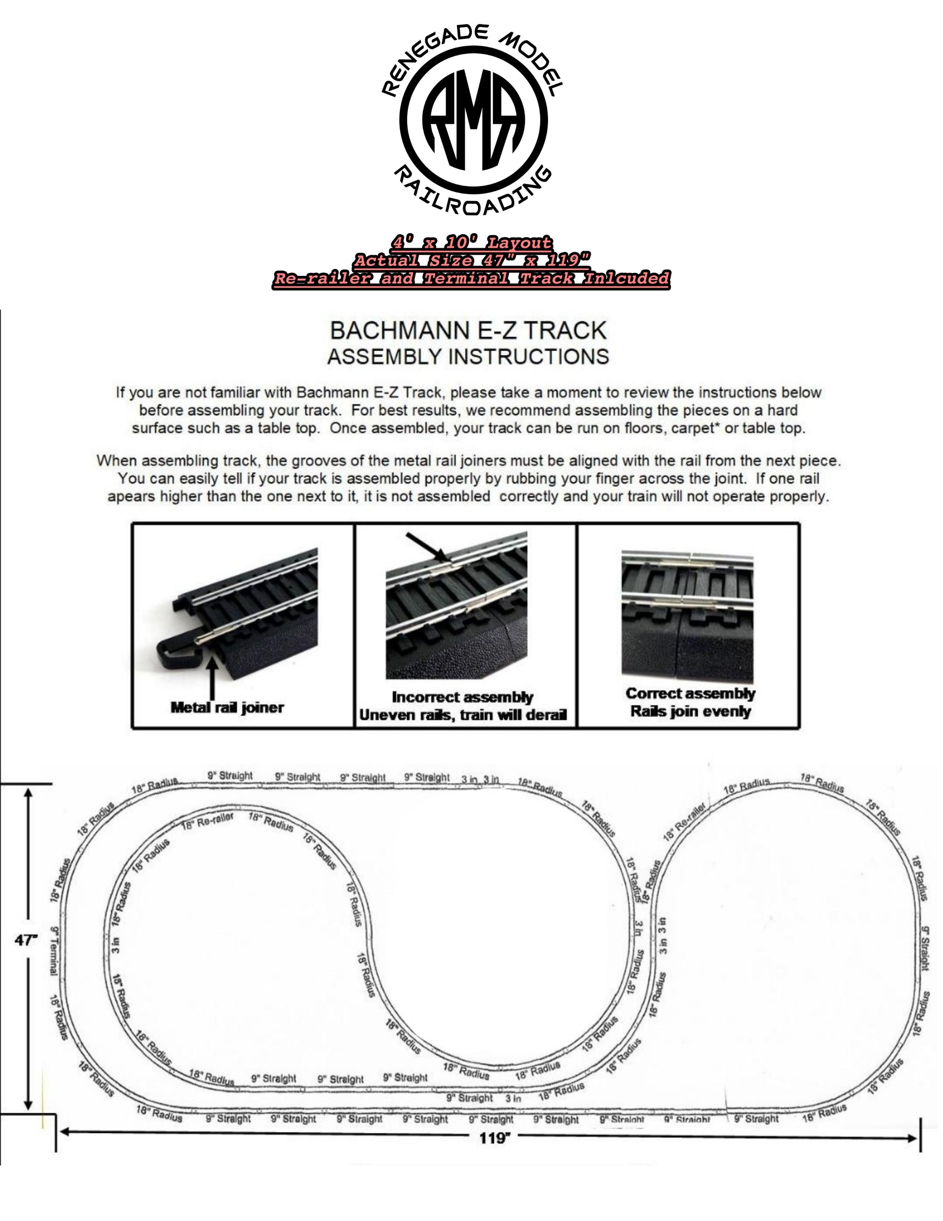 Bachmann HO Scale Nickel Silver EZ Track 18" Radius 4' x 10' 3 Ring
